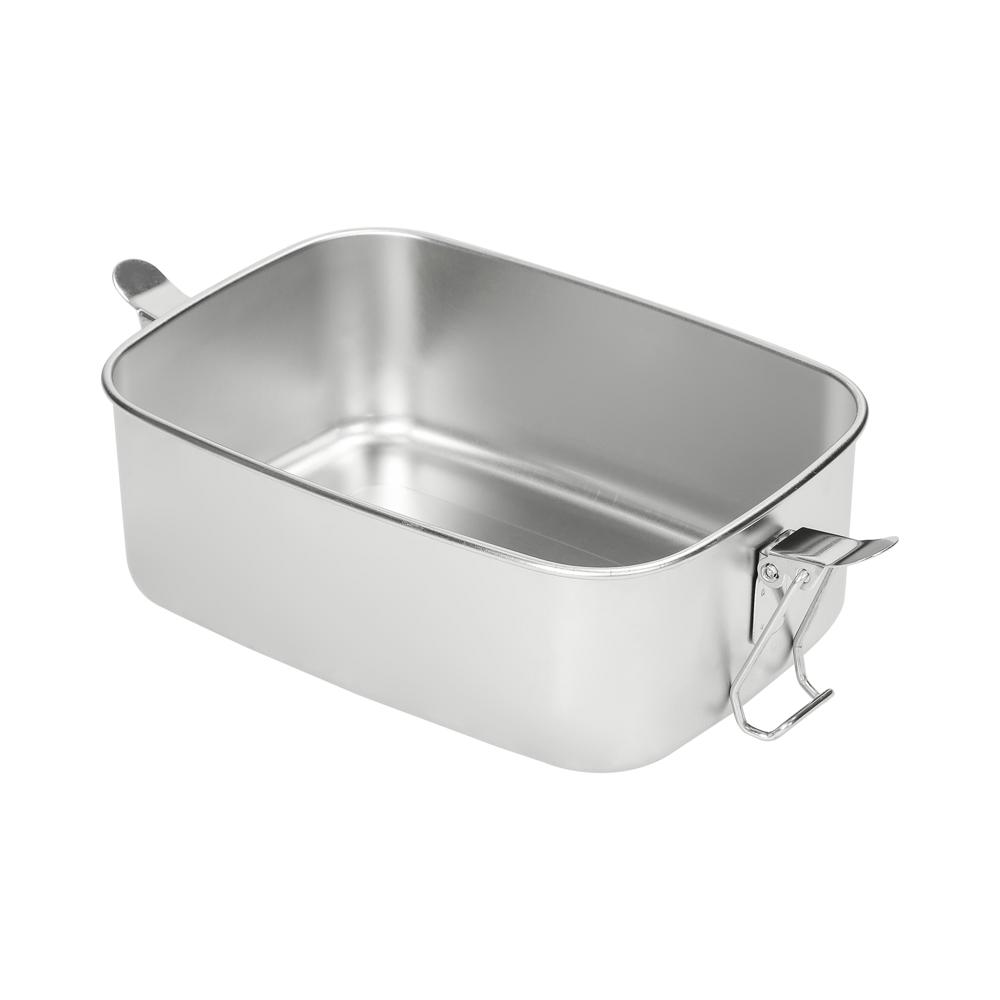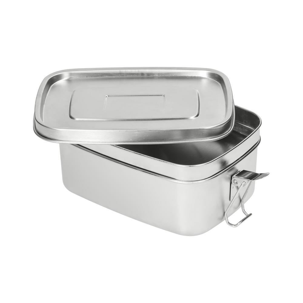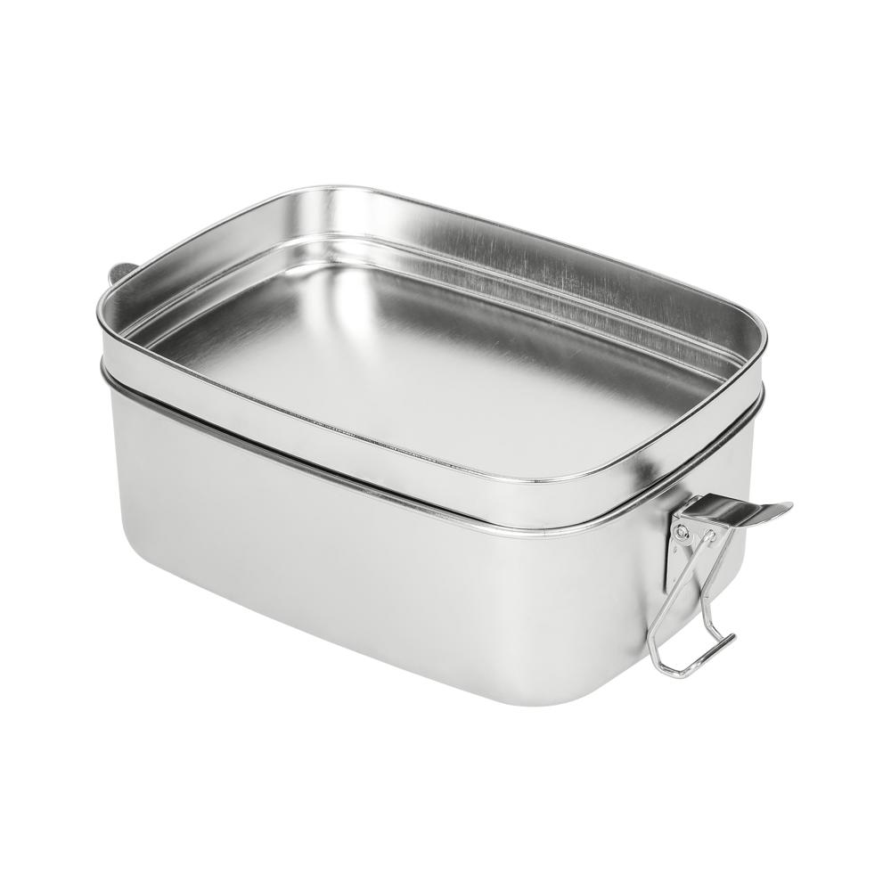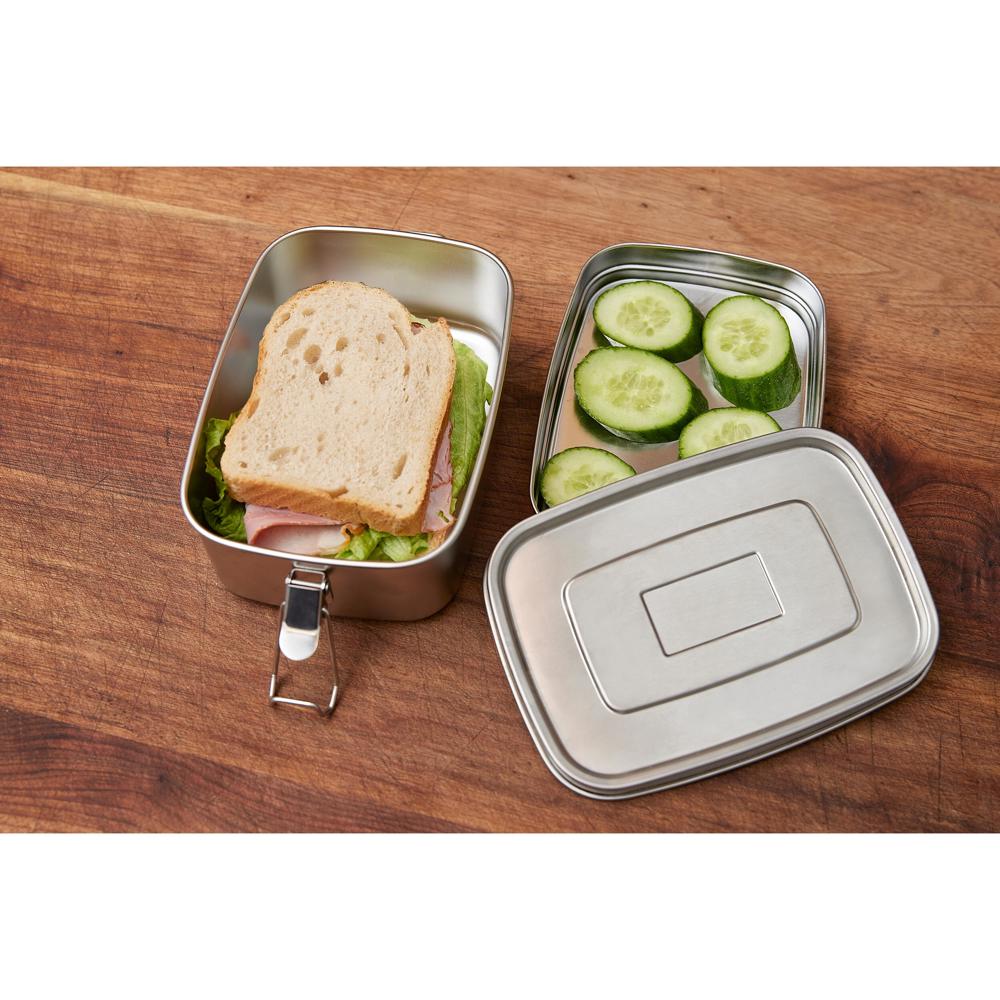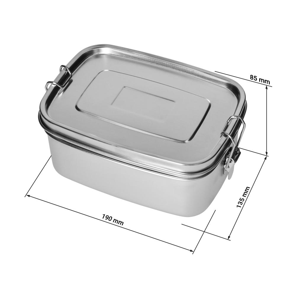 Ideal für's Pausenbrot oder einen Snack zwischendurch. Die Vorratsdose aus Edelstahl besteht aus 3 Teilen - einer großen Schale unten, einer kleineren oben drauf und einem Deckel mit Dichtungsring. Sicher zu Verschließen mit 2 stabilen Klemmbügeln.