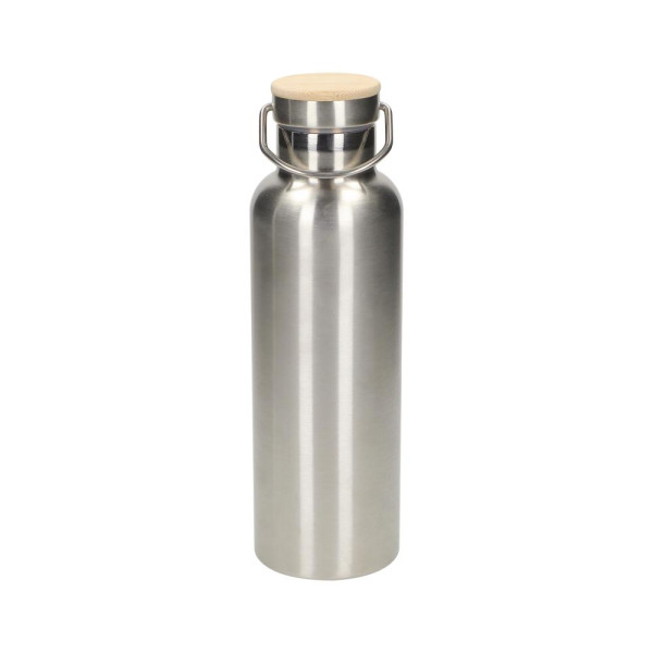 Isolierflasche im minimalistischen Design - Perfekt für Arbeit, Yoga, Wandern, Reisen und Co. Leichte, doppelwandige Flasche aus Edelstahl mit einem Schraubdeckel. Dieser verfügt über eine Silikondichtung, einen Tragegriff für den leichteren Tansport und einer Deckelkappe aus Bambus- Holz. Perfekt dazu passt der Siebeinsatz 01719. Füllmenge: 0,7 Liter.