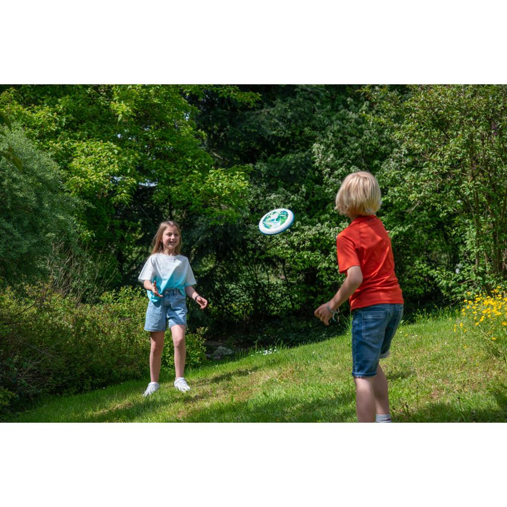 Der Umwelt zuliebe. Die Wurfscheibe wird mit recyceltem Polypropylen, welches bei der elastocare Maskenproduktion übrig bleibt, hergestellt. Der Vliesstoff, der beim ausstanzen der Masken übrig bleibt, wird hierbei nicht entsorgt, sondern gesammelt, recycelt und dem Produktionskreislauf wieder zugeführt. Stapelbar und mit einer Ringstruktur auf der Oberfläche.