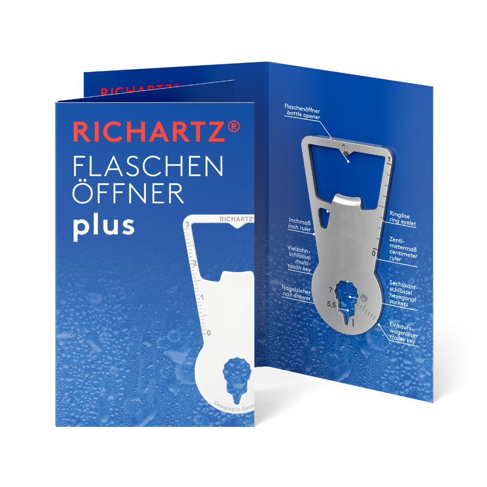 Der RICHARTZ® FLASCHENÖFFNER plus ist der praktische Werbeträger für Marken und Unternehmen. Mit einer individuellen Logogravur und individuell gestalteter 4-seitigen Verpackung in 4c, werben Marken aufmerksamkeitsstark und aussagekräftig!