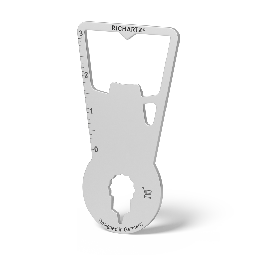 Ultraflach, handlich und an jedem Schlüsselbund entspannt dabei: Kein Kronkorken ist vor unserem FLASCHENÖFFNER plus sicher. Dabei kann er noch viel mehr: Er löst Einkaufswagen und einige weitere Alltagsherausforderungen wie Maß nehmen, Nägel ziehen und vieles mehr!
