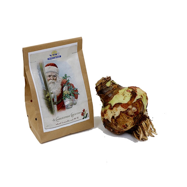 Braune Papiertüte mit Amaryllis als Weihnachtsgeschenk. Ab 50 Stück mit Ihrem eigenen Firmenlabel mehr