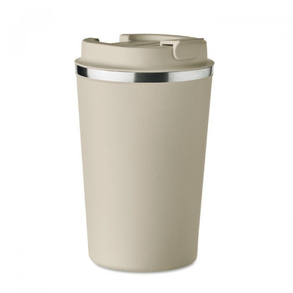 Doppelwandiger Becher aus Edelstahl mit PP-Deckel. Füllmenge: 350 ml.