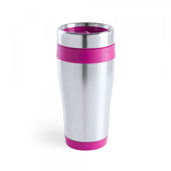 Trinkbecher aus Edelstahl mit 450 ml Fassungsvermögen, glänzendem Korpus und passendem Zubehör in leuchtenden Farben. Leicht zu öffnender Deckel mit Trinköffnung. Es ist ideal für Ihren Schreibtisch, Tisch oder jede andere Oberfläche, auf der Sie in Ruhe Ihr Lieblingsgetränk genießen können.