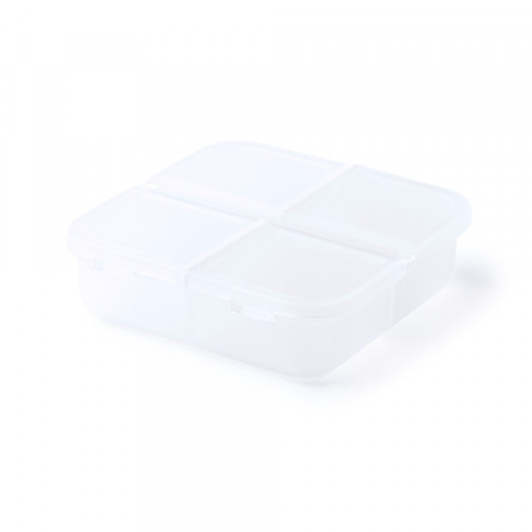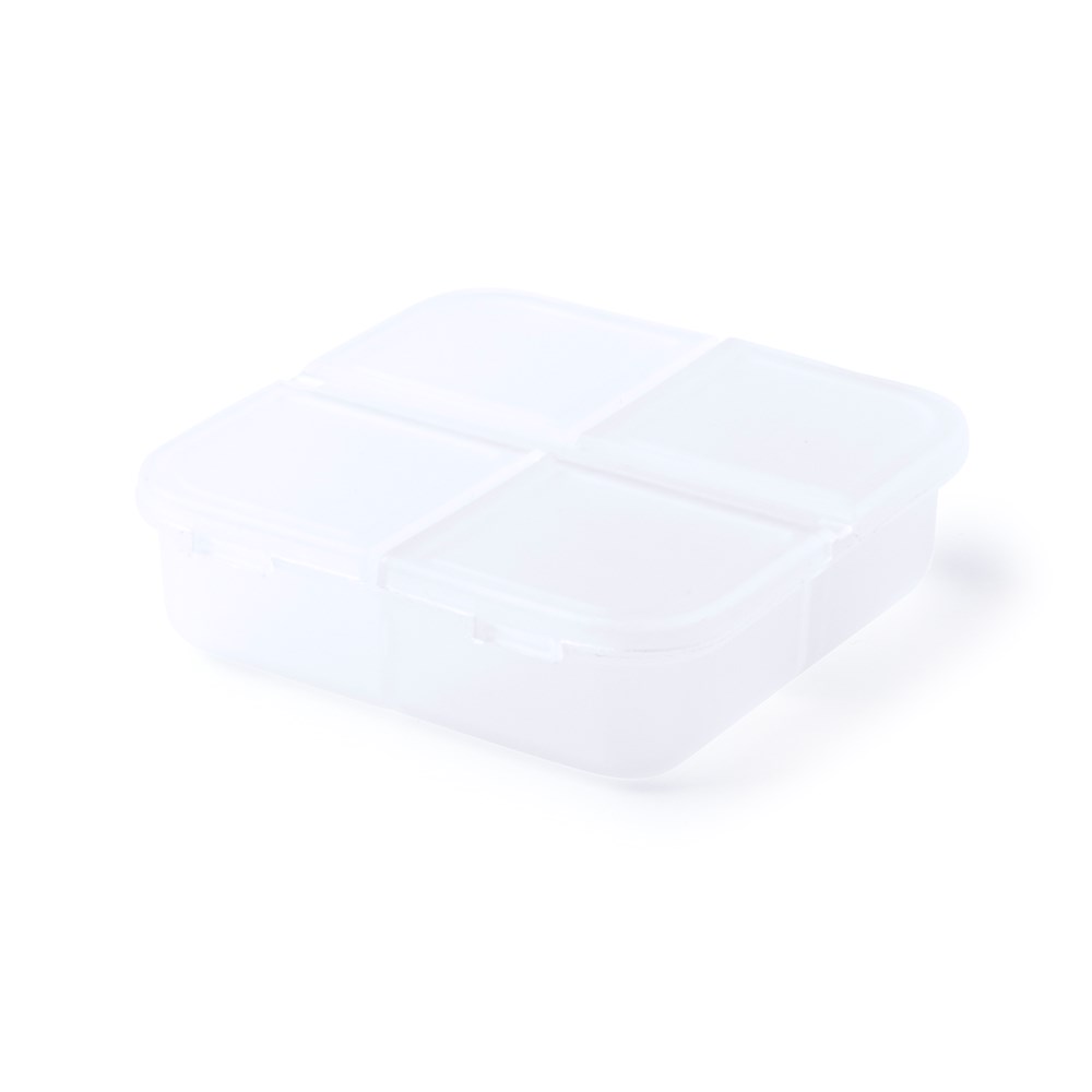 Pillendose aus BPA-freiem, halbtransparentem ABS. Mit 4 Fächern mit individuellen Deckeln.