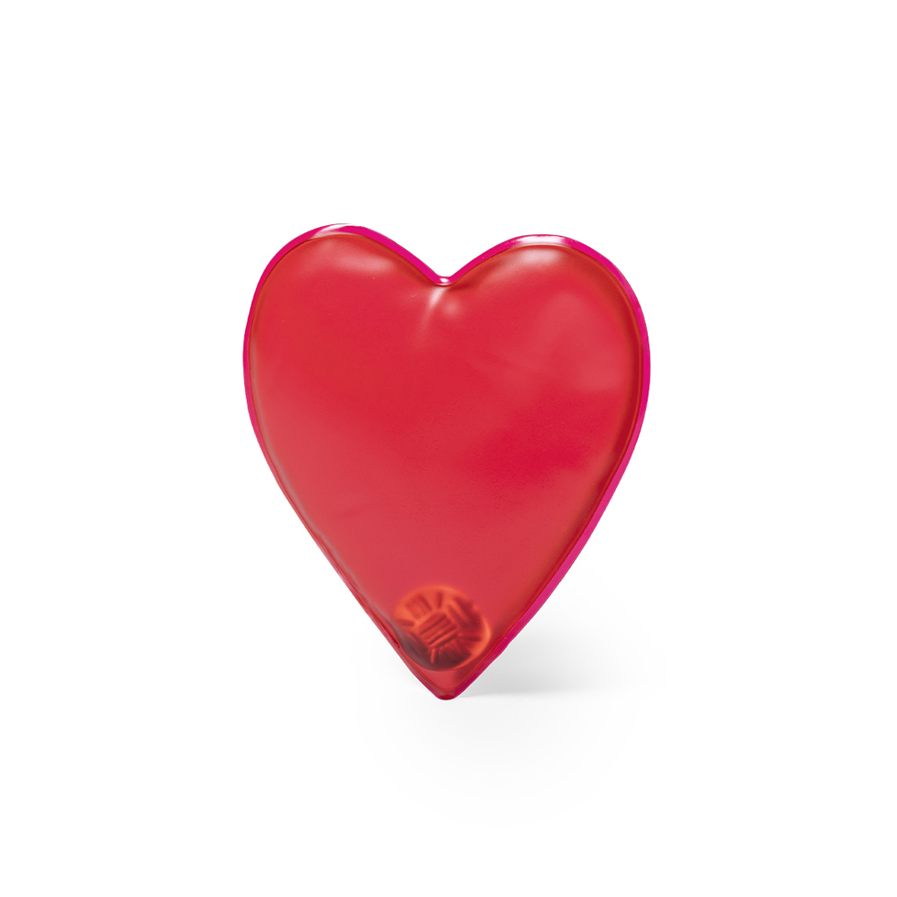 Wärmepatch mit Herzmotiv. Wiederverwendbar und lang anhaltende Wärmewirkung. Er wird durch Biegen des Blechs aktiviert, so dass der Patch aushärtet und sich erwärmt. Zur Wiederverwendung erwärmen Sie Wasser in einem Behälter, in dem sich das Pflaster befindet, bis das Gel im Inneren wieder flüssig ist, und drücken Sie das Metallblech erneut an. Betriebsanleitung in Englisch und Spanisch verfügbar.