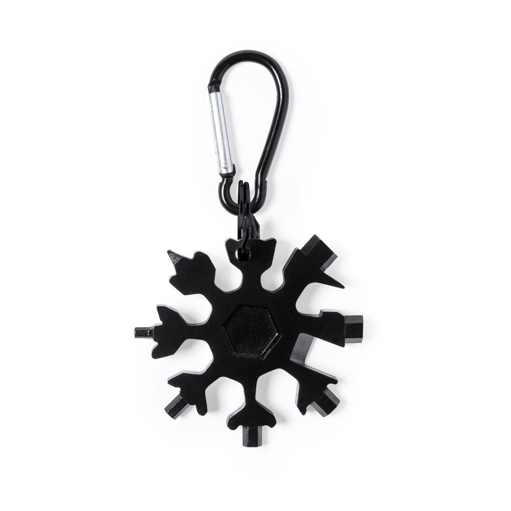Echtes und handliches Multitool aus widerstandsfähigem Edelstahl in schwarzer Ausführung, mit passendem Ring und Tragekarabiner. Mit 17 Funktionen, einschließlich Flach- und Kreuzschlitzschraubendreher, Inbusschlüssel, Messer und Flaschenöffner. Präsentiert in einer individuellen Blackbox.