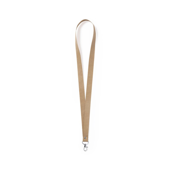 Natur Linie Lanyard aus stabilem Recyclingkarton. Mit drehbarem Metallkarabiner.