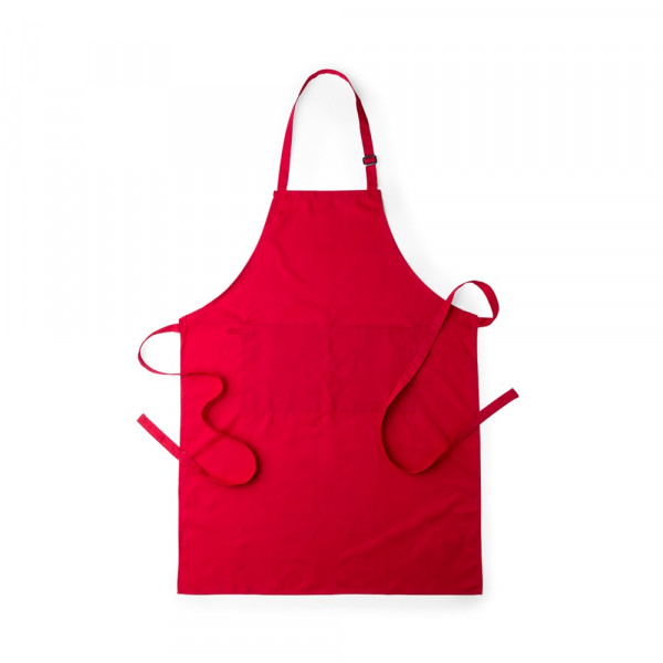 Hochwertige Schürze aus TC-Material - Baumwoll/Polyester-Mischgewebe - in verschiedenen kräftigen Farben. Mit doppelter Fronttasche und Bändern zum Einstellen im Nacken. Schlitz unter dem Knie.