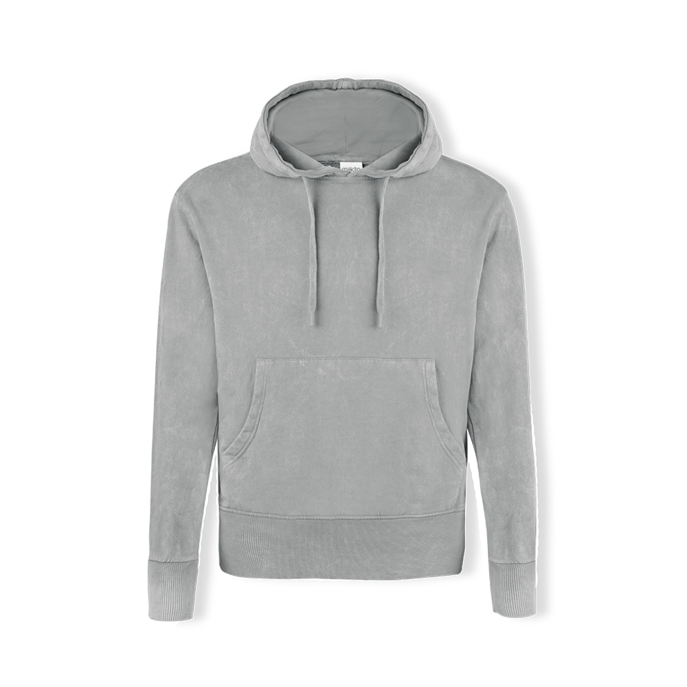 Unisex-Kapuzenpulli mit Jeans-Waschung, die jedes Stück einzigartig und unwiederholbar macht. Kängurutasche und extra breiter Gummizug für eine perfekte Passform. Elastische Details an Ärmeln und Saum. Hergestellt aus 100% gekämmter Baumwolle mit einer Grammatur von 280g/m2. Weicher Griff und moderner Schnitt. Verstellbare flache Kordelzüge und Ösen, die die Verwendung von Metall vermeiden. Doppelte Nähte für Haltbarkeit und Widerstandsfähigkeit bei starker Beanspruchung. Leicht ablösbares Etikett. Erhältlich in den Größen XS, S, M, L, XL und XXL.
