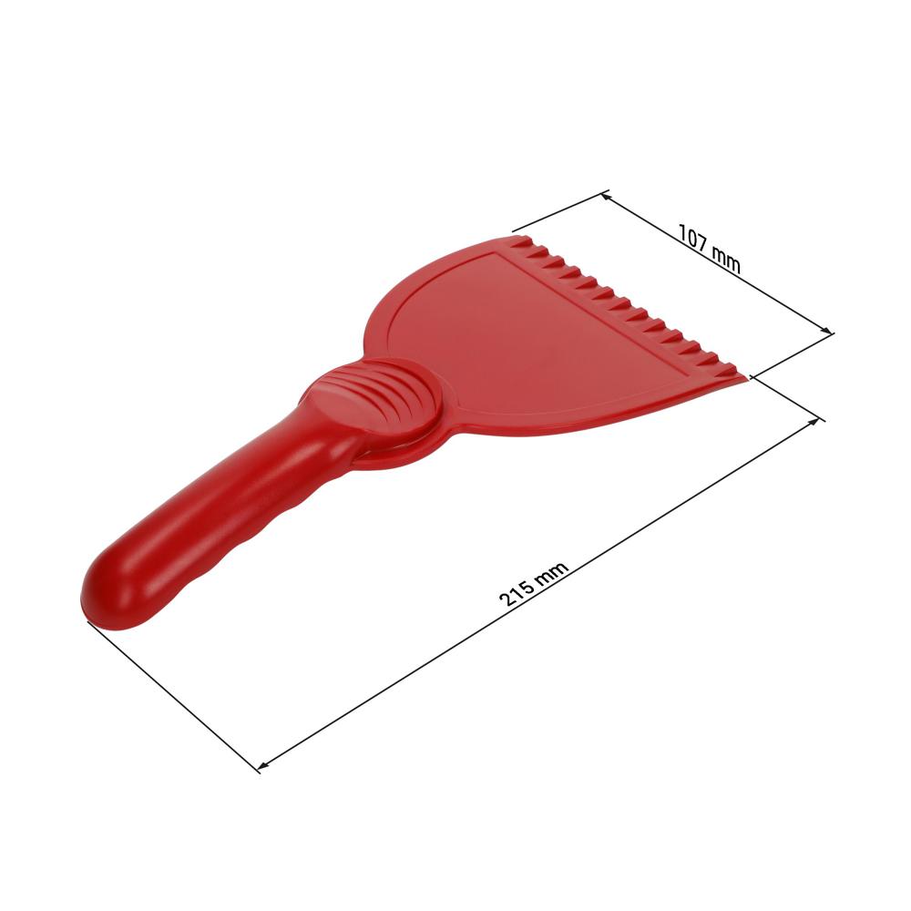 Ergonomisch geformt und stabil. Kunststoffeiskratzer mit glatter Kratzkante, Kratzzacken und handlichem Griff.