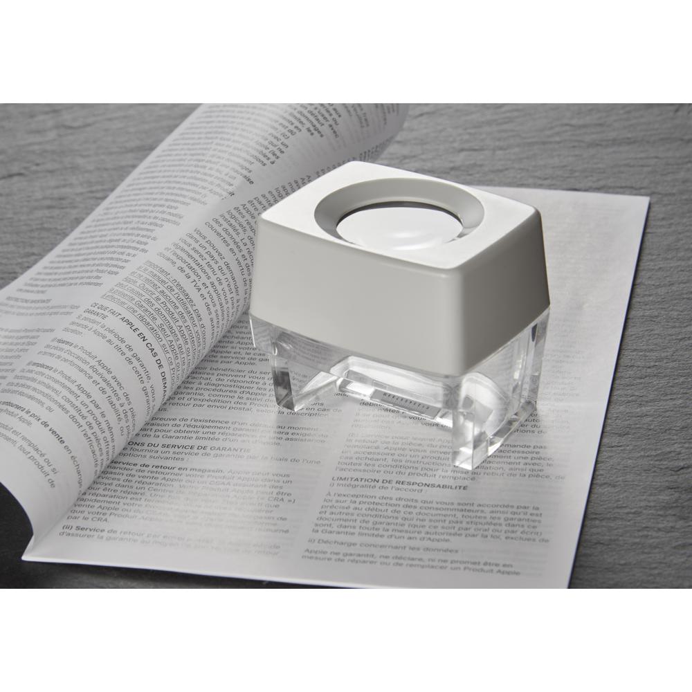 Standfeste Lupe mit großer 24 mm Linsenöffnung, 8-facher Vergrößerung, 3 cm Gesichtsfeld und 32 g Gewicht.