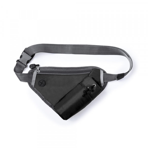 Bauchtasche mit dreieckigem Design aus weichem 210D Polyester in verschiedenen Farben. Entwickelt für Sport- und Freizeitaktivitäten. Mit Reißverschlussfach, Kopfhörerausgang, verstellbarer Flaschentasche und verstellbarem Gurt mit Klickverschluss. Flasche nicht inklusive.