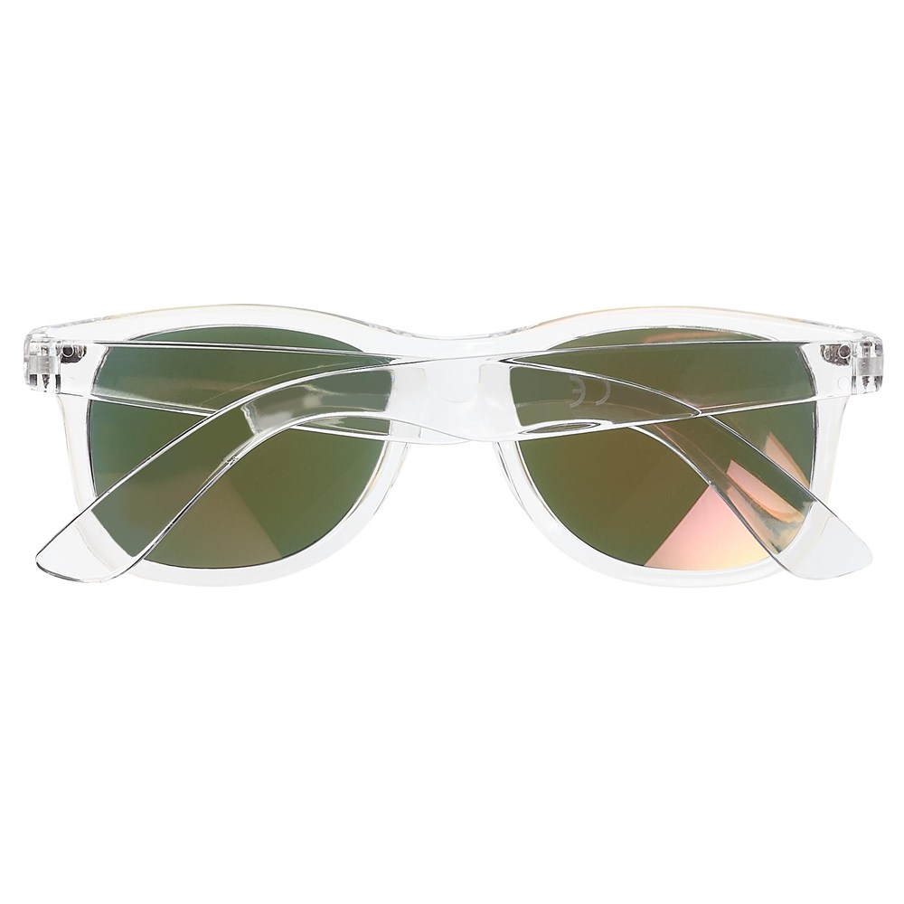 Kultige Sonnenbrille im Blues-Stil. Rahmenfarbe in schwarz, weiß oder transparent erhältlich. Der Rahmen ist aus leichtem PC. Die getönten Gläser sind aus Acryl und haben UV-400 Schutz. Die speziell verspiegelte, gelb- orangefarbene Folie macht den besonderen Effekt. Leicht und angenehm zu tragen. Entspricht den Anforderungen der EU-Verordnung 2016/425 und der Norm EN ISO 12312-1:2022 (DIN EN ISO 12312-1:2023-07) . Filterkategorie 3, Klasse I.