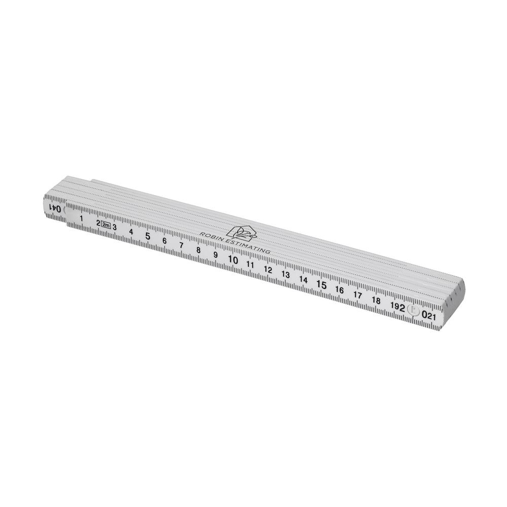 Handelsüblicher Zollstock aus ABS mit 2 Metern Länge bei 10 Segmenten. Der Zollstock hat eine 90° Einrastung.