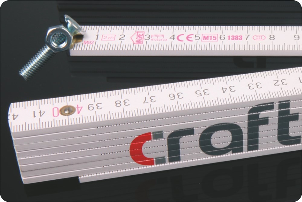 Dieser craftmeter ist die perfekte Kombination eines preisgünstigen Buchenholz-Zollstocks 2m mit Winkeleinteilung(Dach- , Treppenneigungen etc.), einer sehr großer Werbefläche sowie eines Magneten. Dieser besteht aus Neodym, dem weltweit stärksten Magnetmaterial und befindet sich in einer Kopfseite des ersten Gliedes.Die Haltekraft des Dauer-Magneten beträgt bis zu 500g. Damit ziehen Sie Schrauben, Nägel, Werkzeuge oder Schlüssel kraftvoll an, um sie hinter Heizungen, Schränken und Schächten hervorzuholen.