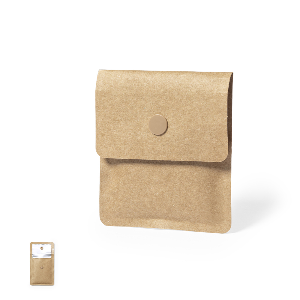 Linie Natur Taschenaschenbecher, außen mit laminiertem Recyclingpapier und innen aus feuerfestem Aluminium. Klappe mit passendem Haken- und Ösenverschluss.