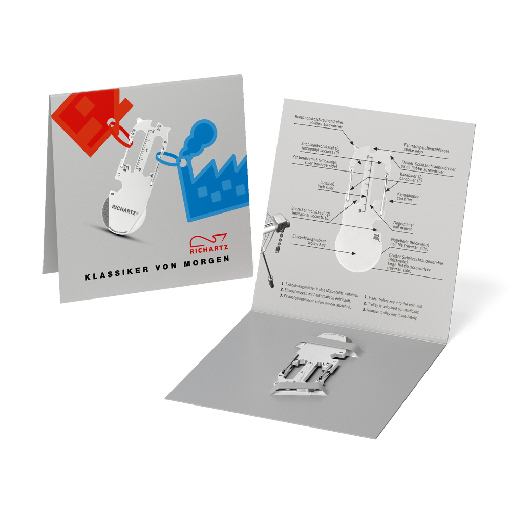 RICHARTZ® KEY ORGANIZER modern-2 ist der erfolgreiche Werbeträger für Marken und Unternehmen. Mit einer individuellen Lasergravur und individuell gestalteter 4-seitigen Verpackung in 4c, werben Marken aufmerksamkeitsstark und aussagekräftig!