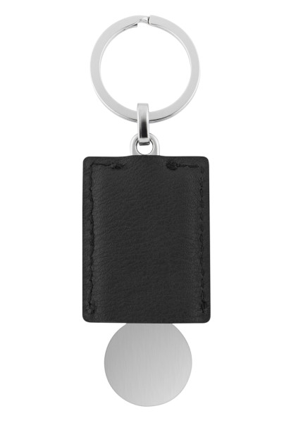 Edel-Shopping Schlüsselanhänger mit Einkaufswagenlöser und markantem PU-Etui für große Werbedrucke VPE 500. Designkarte