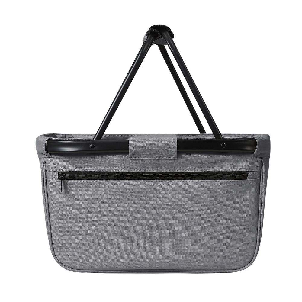 formschöner Einkaufskorb mit Alurahmen und Reißverschluss-Vortasche; faltbar