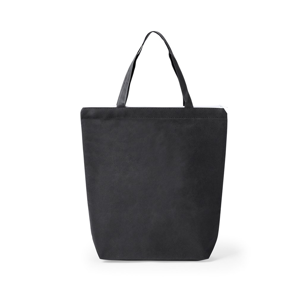 Non-Woven-Tasche aus Faservlies (90 g/m2) in einer Vielzahl von kräftigen Farben. Mit Reißverschluss in Weiß und Zwickel sowie 45 cm langen Henkeln und Steppnähten. Belastbar mit bis zu 6 kg.