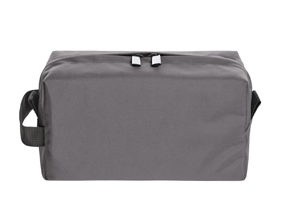 praktische rechteckige Reißverschlusstasche für viele Einsatzbereiche; RPET-Obermaterial; großes 2-Wege-Reißverschluss Hauptfach; Netzfach innen; seitliche Grifflaschen zum leichten Öffnen; Handgriff