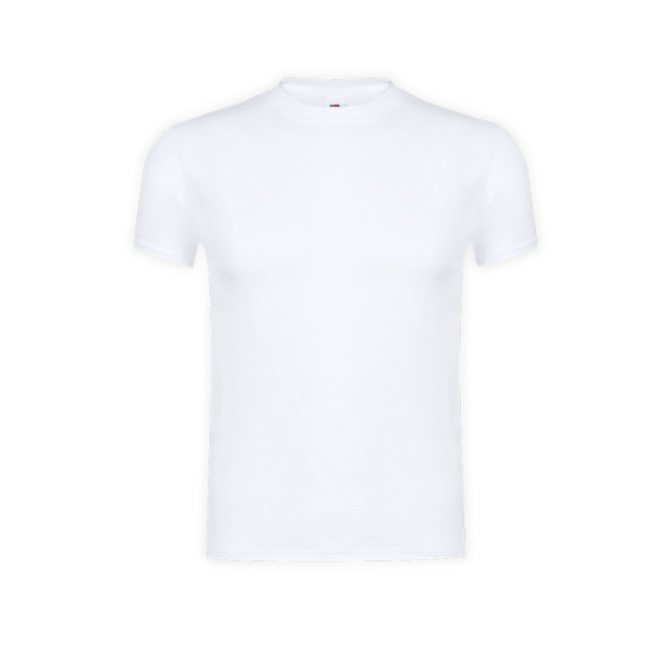 Weißes Erwachsenen-T-Shirt Original T von Fruit Of The Loom. Hergestellt aus 100% Baumwolle 140g/m2. Weich auf der Haut, mit geripptem Rundhalsausschnitt und passender Knopfleiste. Mit engeren Maschen zur Verbesserung der Druckqualität und in den Größen S, M, L, XL, XXL erhältlich.