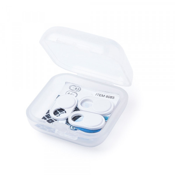 Cover für Webcam zum Schutz der Privatsphäre. In ultrakompakter Größe und verpackt in einer individuellen, halbtransparenten Dose mit 3 Stück. Erhältlich in den Farben Weiß und Schwarz. Präsentiert in einem individuellen Beutel mit Kartoneinlage.