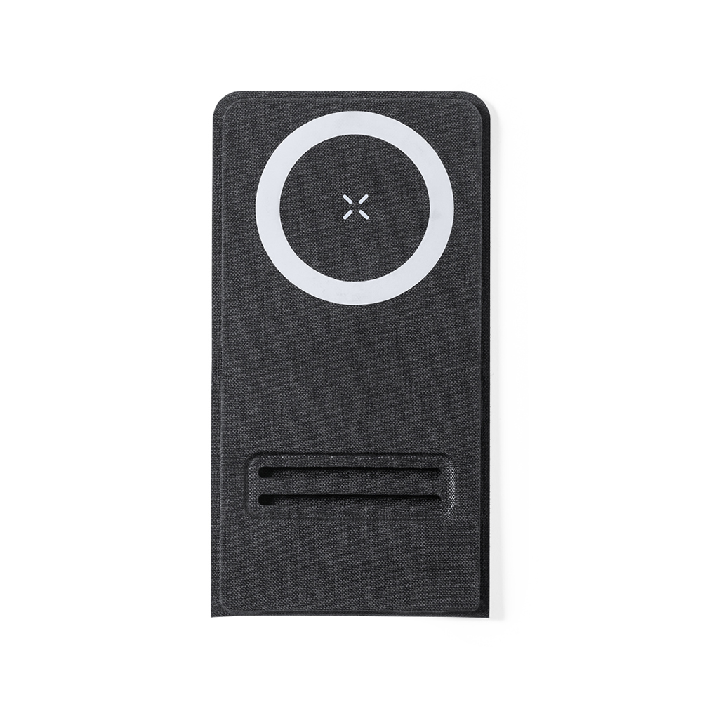 Kabelloses Ladegerät 15W. Hergestellt aus widerstandsfähigem Polyester 300D und mit magnetischer Befestigung für die Verwendung des Geräts während des Ladevorgangs, inklusive Klebering. Kompatibel mit allen Geräten mit Magsafe und Qi-Technologie. Kleine gefaltete Größe für Portabilität und präsentiert in einer individuellen, attraktiven Design-Box.