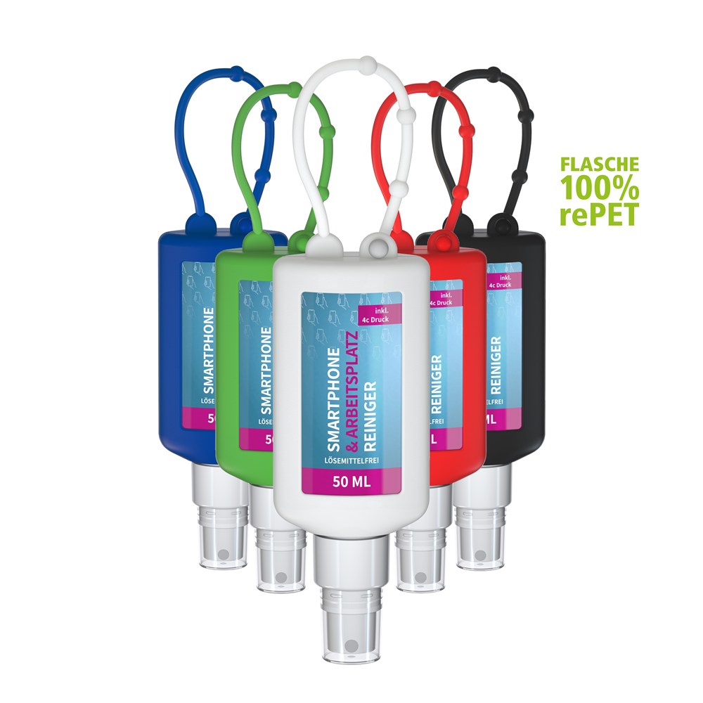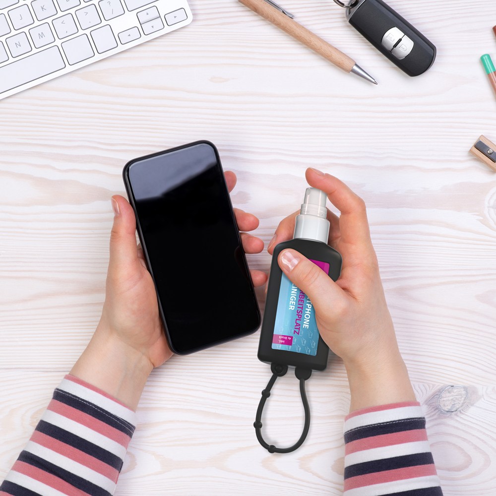 Smartphone & Arbeitsplatz-Reiniger, 50 ml Bumper schwarz, Body Label (R-PET)