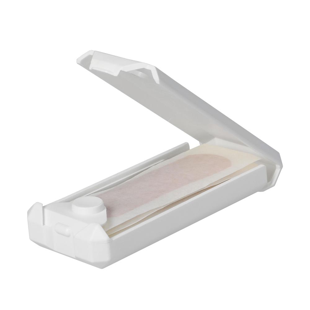 Mit einer Hand zu öffnen aufgrund des Druckknopf-Klickverschlusses. Kunststoffbox befüllt mit 5 x 2-er Pflastern. Farbkombinationen, Fußball-Design und geprägtes Logo im Verschlussknopf auf Anfrage.