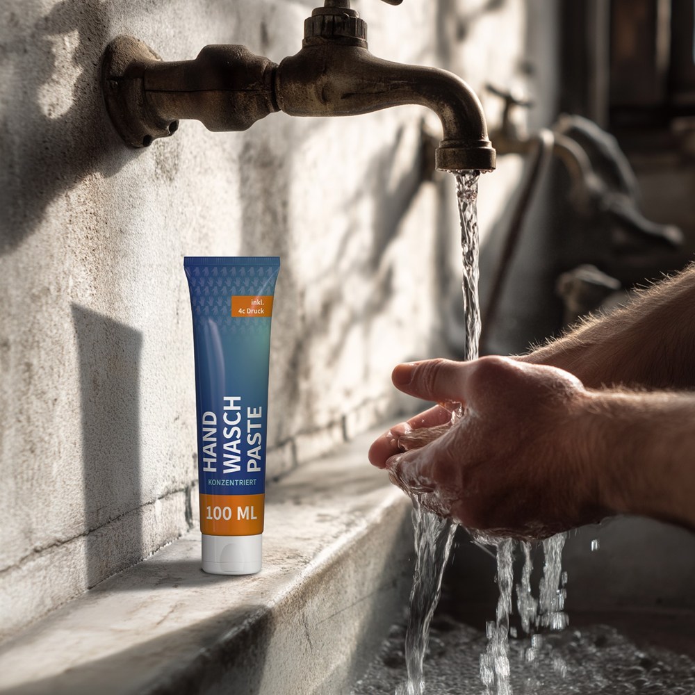 Profi-Handwaschpaste, 100 ml Tube (weiß) mit Klappdeckel.